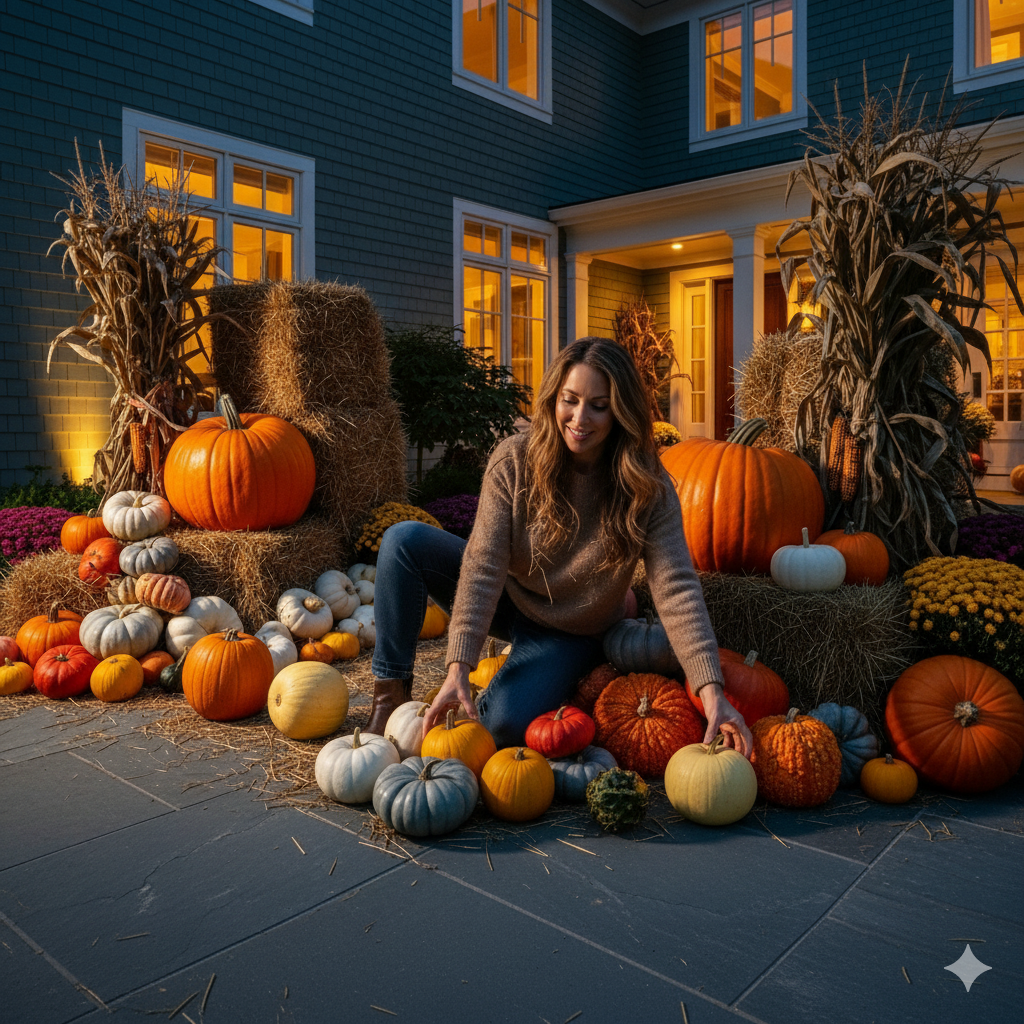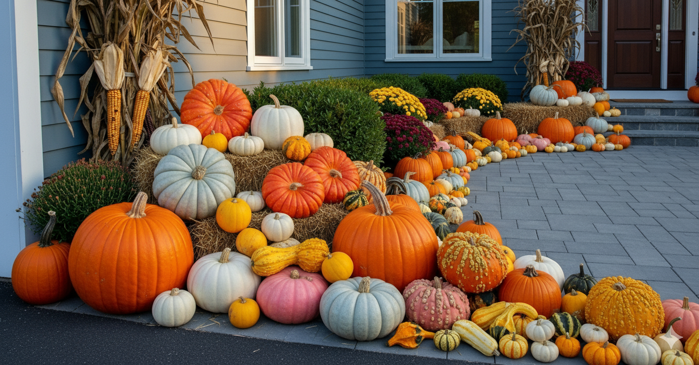 Your package contains (~170 pumpkins + hay bales, mums and corn stalks):