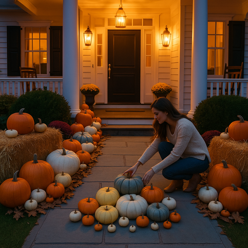 Create the ultimate autumn statement with our premium heritage collection featuring approximately 170 pieces. Features 2 giant showpiece prize winners, 4 XL pumpkins, 10 large traditional pumpkins, 8 medium pumpkins, 20 sugar pumpkins, 4 flat white heritage pumpkins, 4 mellow yellow specialty pumpkins, 16 mixed heritage varieties (blue jarrahdale, rouge vif d'étampes, fairytale, pink), 40 minis, 50 gourds, 4 hay bales, 4 corn stalks, and 4 mums. Includes delivery and master craftsman styling. Priority scheduling coordination with dedicated client support for a truly specialized experience. (Images are for reference only)