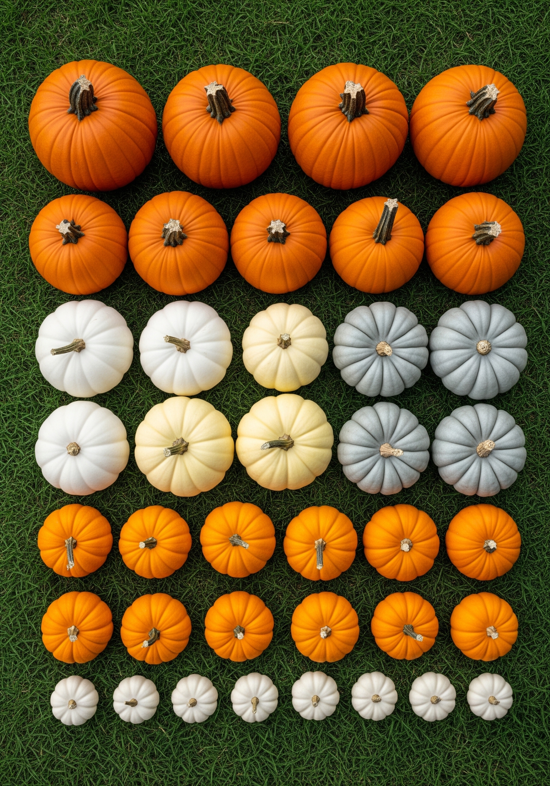 Transform your display with classic New England autumn varieties. This collection features 30 quality pumpkins including 5 large traditional orange, 5 medium pumpkins, 12 sugar pumpkins, 3 flat white heritage pumpkins, 3 mellow yellow specialty pumpkins, and 2 blue jarrahdale heritage pumpkins. Includes delivery and basic placement. Professional design service available as add-on. (Images are for reference only)